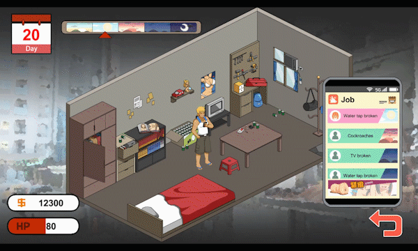 透过接案工作可以赚钱以及认识特定的角色,在对方家里时可以藉由”互动”视窗选项来触摸对方、与对方那啥。