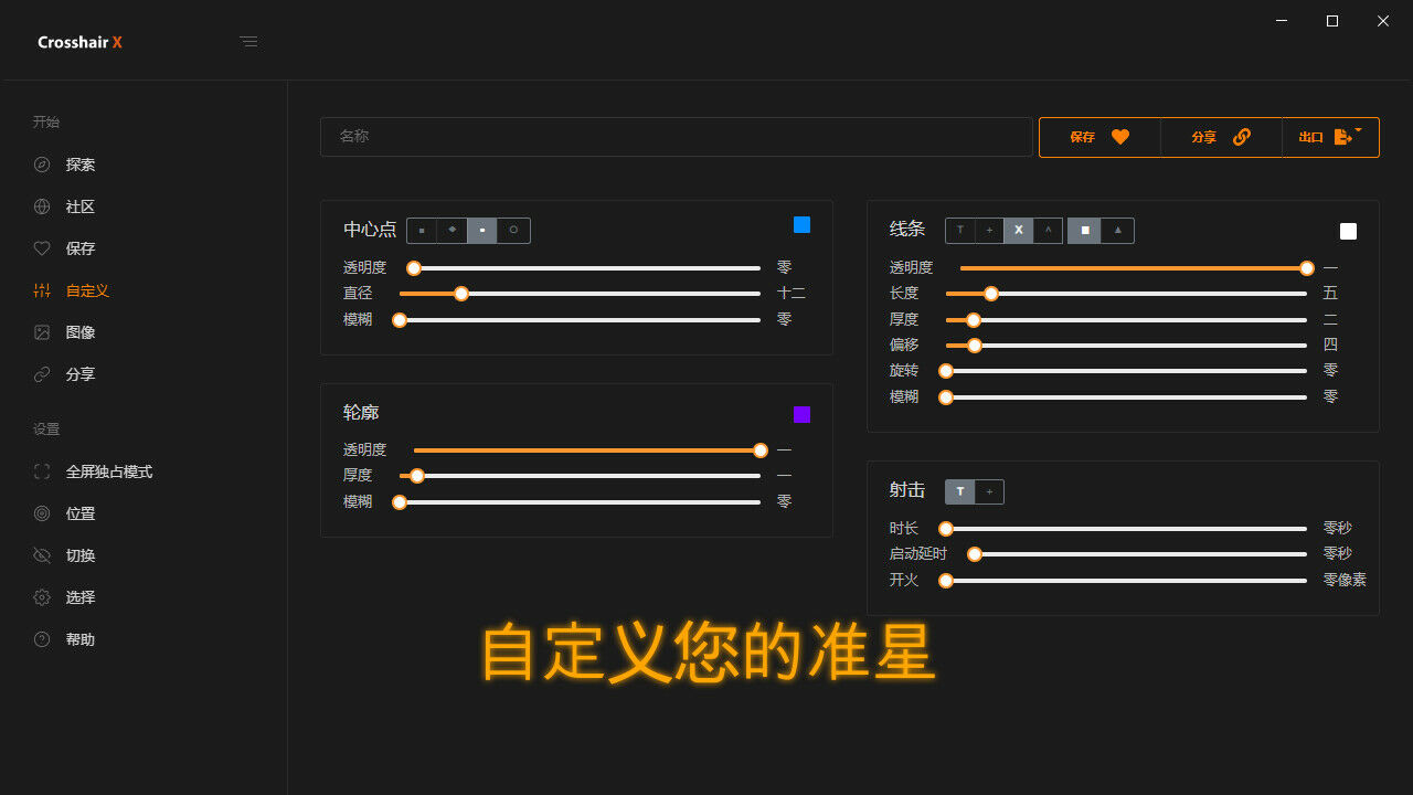 - 自定义: 可以轻松使用滑块调整十字准星的所有功能