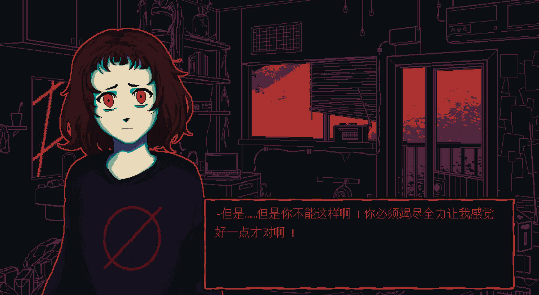 - 非写实风格的像素图形画面,反映了小女孩对世界扭曲的认知。