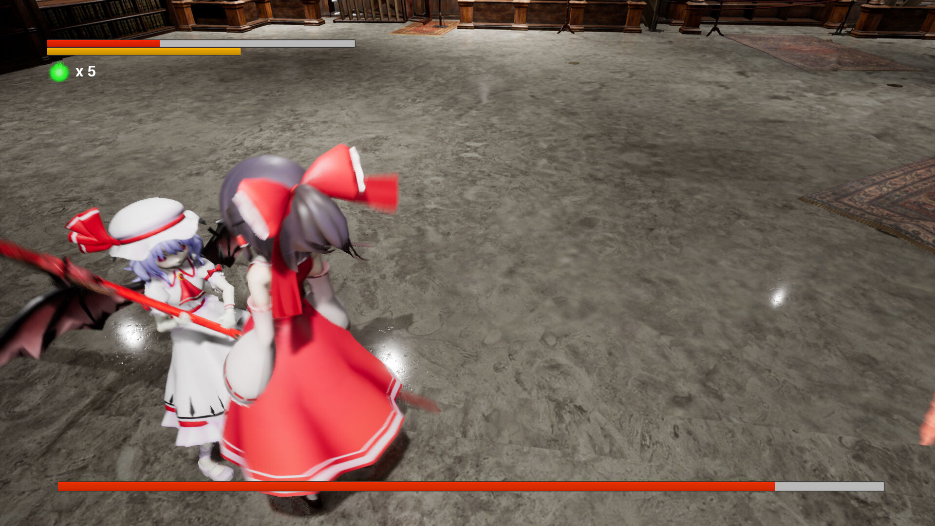 游戏难度调低了,6瓶药,灵梦攻击距离变长40%,精力加了很多,本来是够砍5刀,现在够砍7刀(会不会太多了?)还是保留了老的版本,希望玩过魂系列的或者想挑战难度的玩老版本,昨天确实看到不少dalao打通了截了图,所以这个难度是可以过的。