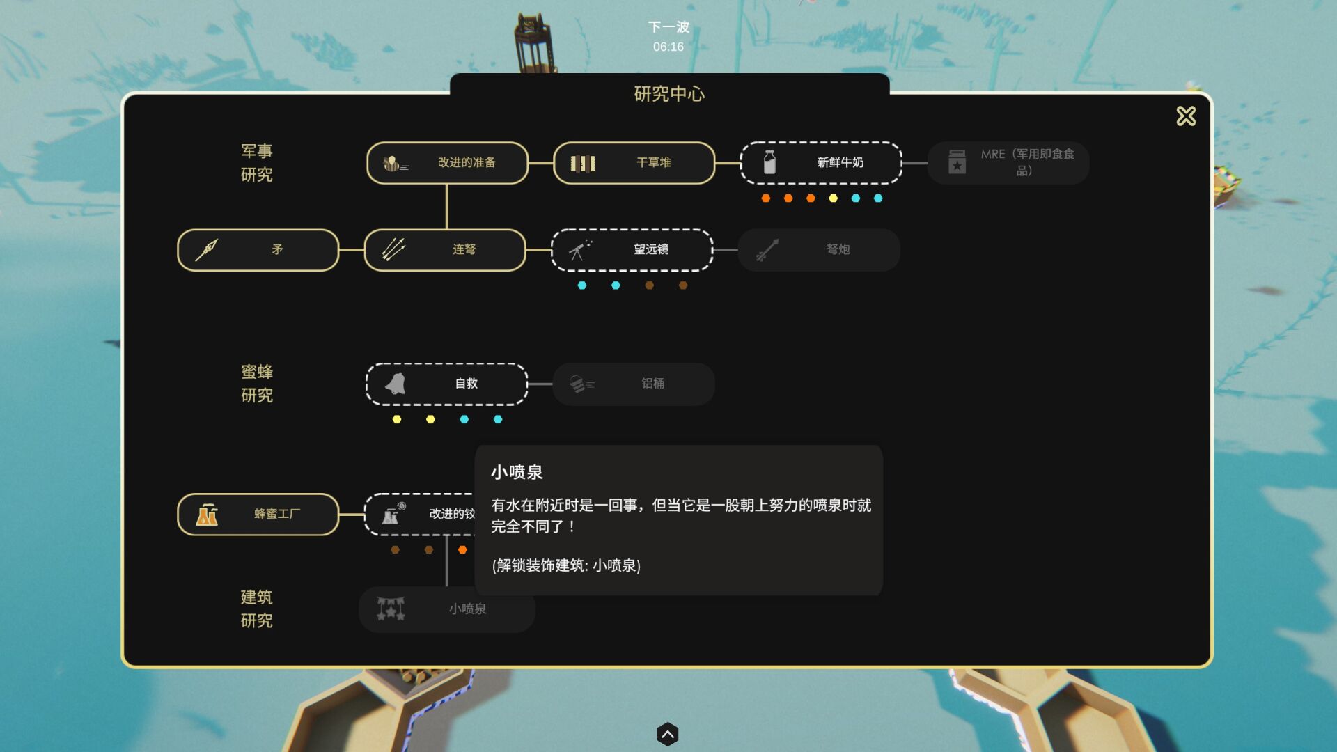 【单机】 蜜蜂岛【度盘】 单机游戏 1年前 otina土宫长 - 4 一款有趣的3D经营塔防小游戏,可第一人称操控炮塔以及第三人称建造。 最后审核由 龙姐 UID:1 防守 敌人不时攻击你的蜂巢。 他们投下炸弹、喷洒毒药并发射火箭。 每一次他们都会变得更强。 建造弩炮、机关枪、防空导弹发射器和其他防御设施来保护您的蜂巢 研究科技树 研究新的技术和建筑以应对不断加强的敌人。选择哪些技术将引领你走向胜利?你会以和平结束战争还是毁灭所有敌人? 蜜蜂 女王需要更多的工人和战士。 建造幼儿园和学校来培养新的蜜蜂 工厂 游戏中有 7 种资源,要获得其中一些资源,您需要工厂。 建造蜂窝并在其上放置建筑物 休闲