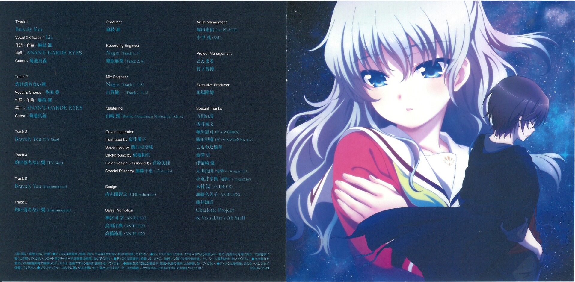 灼け落ちない翼》一同收录于单曲CD《Bravely you/灼け落ちない翼》中。