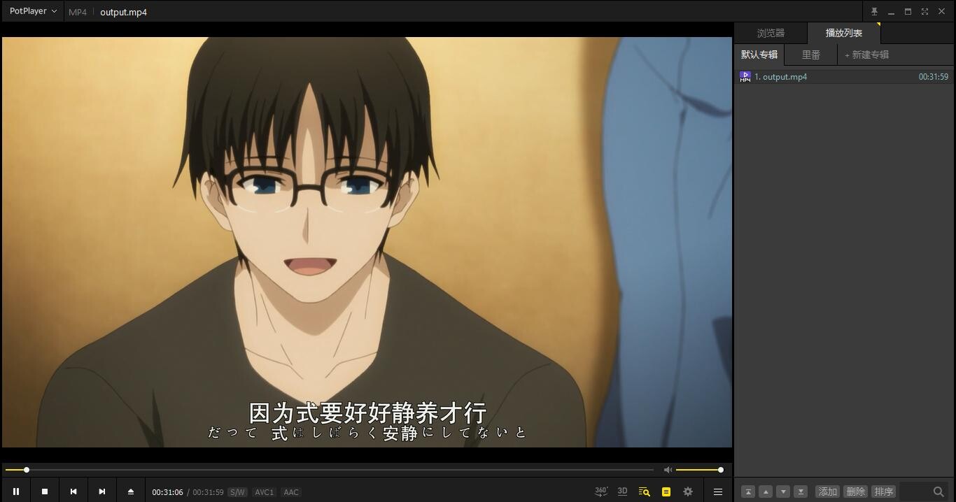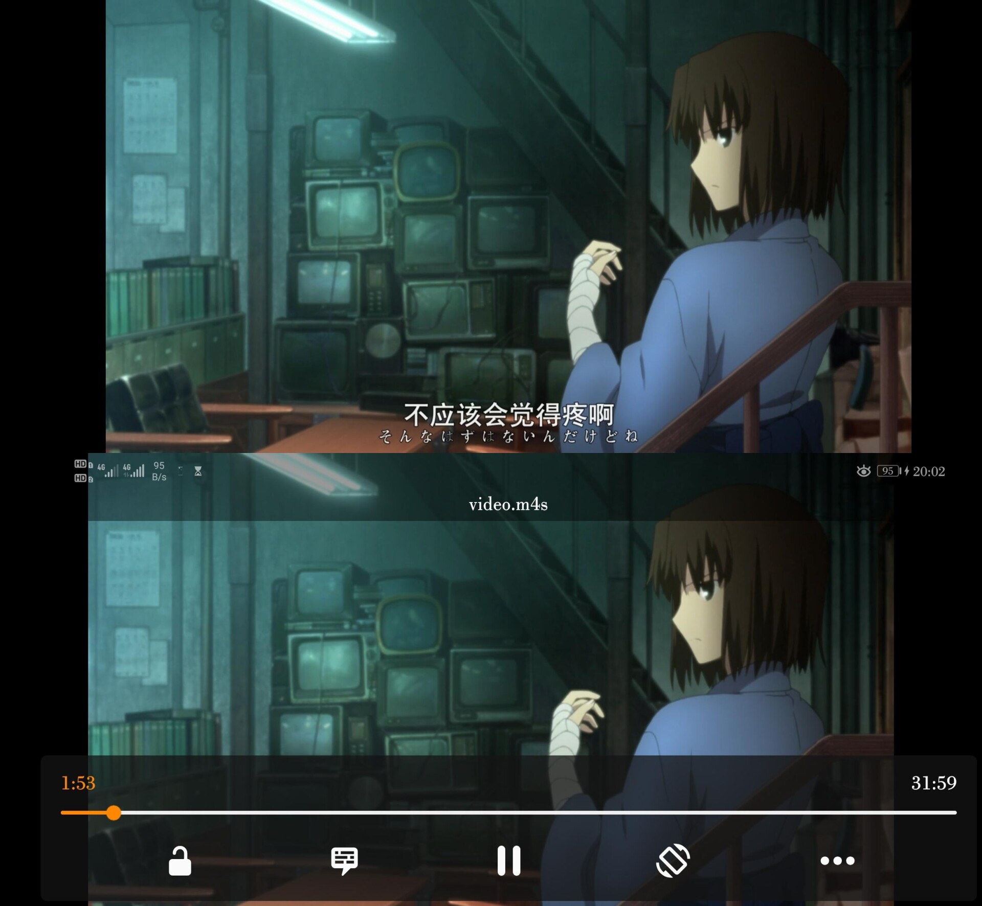 上图为b站播放器,有声音有画面,下图为VLC播放器,由于音轨分离的原因,只有画面无声音(有字幕)