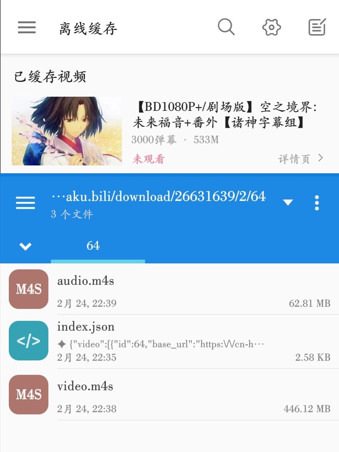 譬如空境番外篇,依照文件体积即可找到对应位置,audio对应音频文件,video对应视频文件