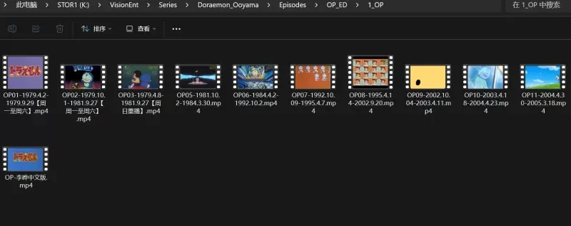大多数片源是在b站@哆啦4k修复那里下载的,楼主用ffmpeg匹配删除了一千多个视频里面的无关部分,留下了纯净动画并整理归类撰写数据,别的则是互联网各种犄角旮旯里翻出来的。能有1080P的都1080P了,少数特殊资源没有1080P,楼主后续等服务器资源空出来可能会用Topaz Video Enhancer改善一下,到时候直接发补充包。