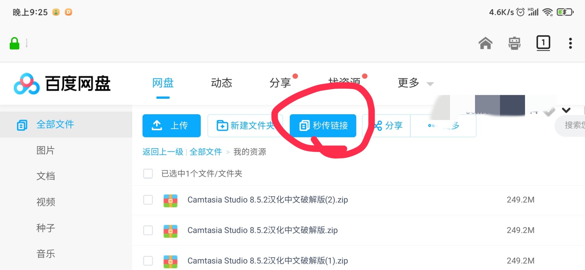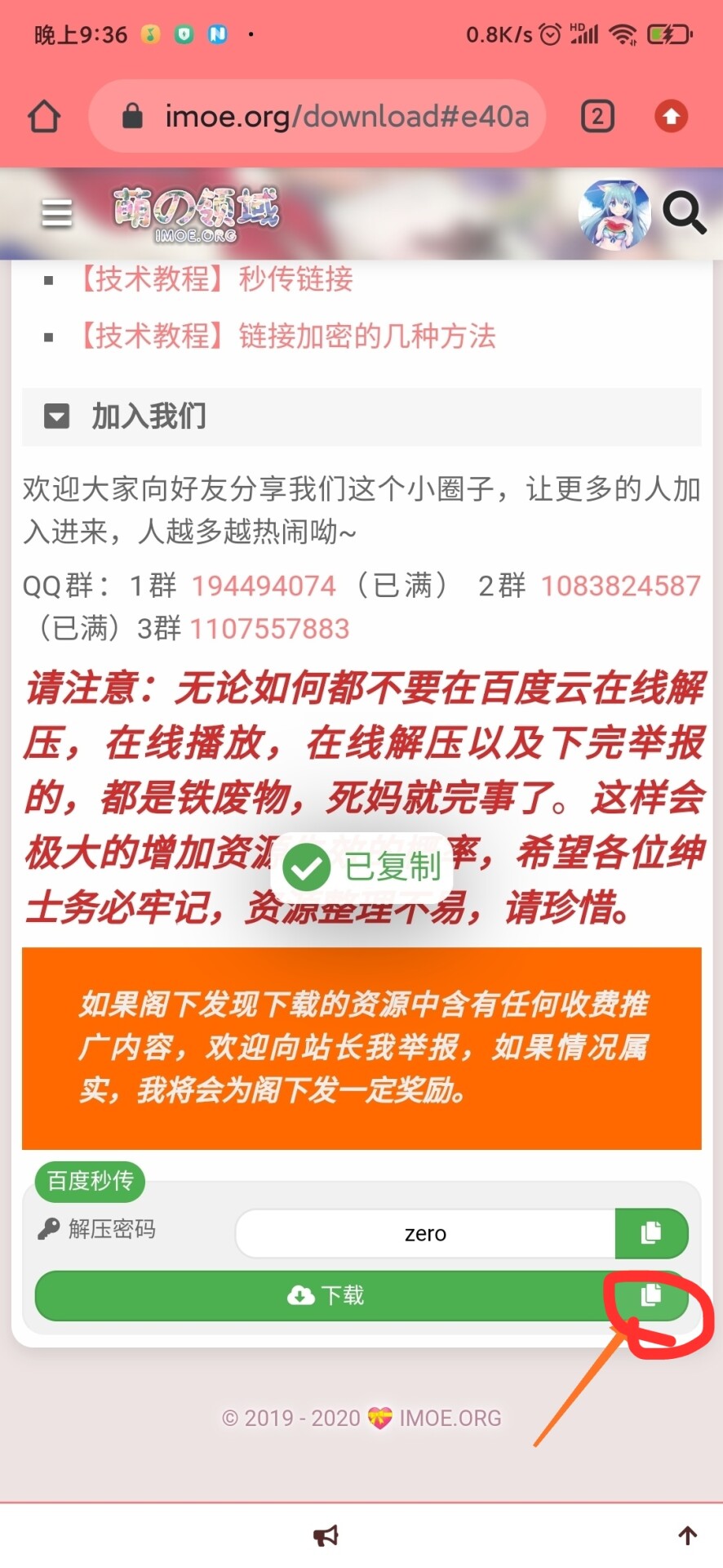 首先,这种资源就是秒转链接资源,角标标了 百度秒转 字样。要点击红圈的地方。这时会提示已复制,复制内容就是秒转链接文件的链接了。