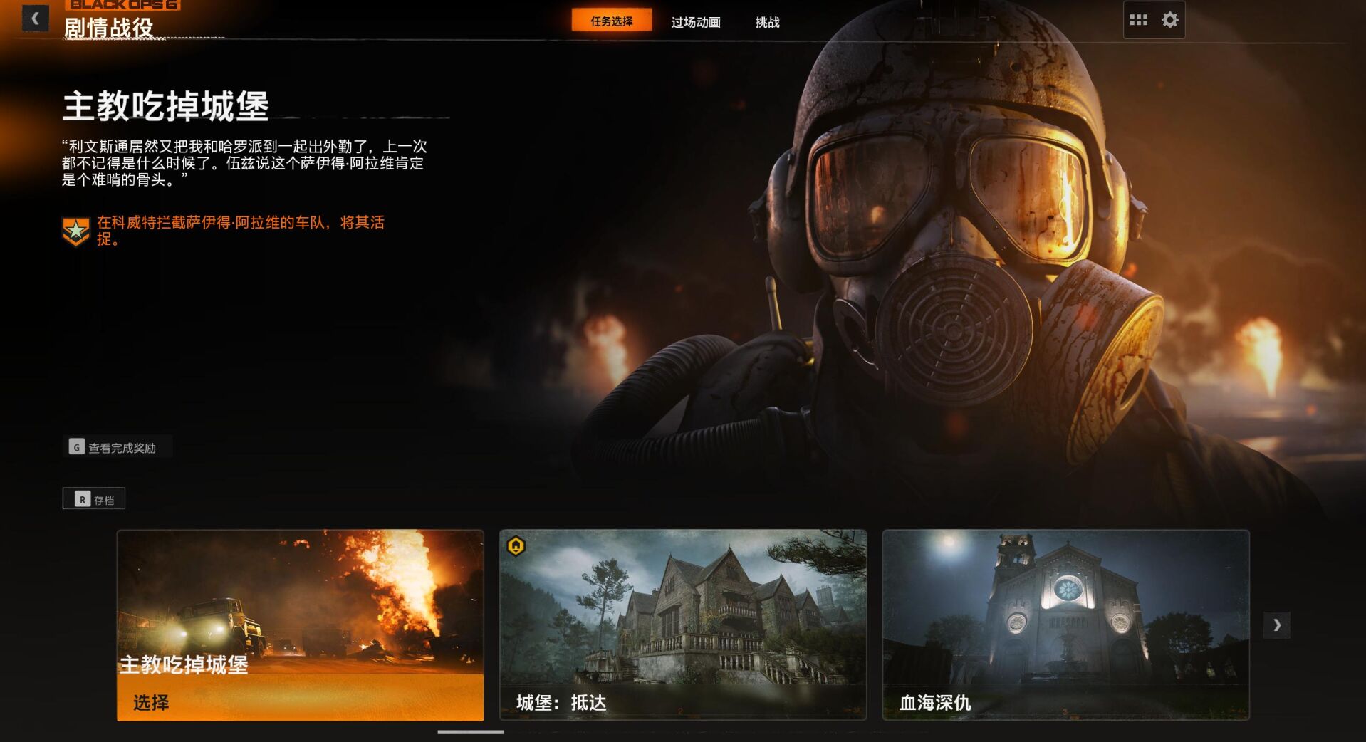 和前作一样,《黑色行动6》的战役模式由Raven Software开发,其背景设定于1990年初(即《冷战》和《黑色行动II》闪回部 分之后),期间正值海湾战争,一个名为“万神殿”的神秘组织趁机渗透到了中情局最高层,玩家将扮演一名名为威廉·卡尔德 隆,代号“凯斯”的中情局特工——和前作的“贝尔”一样来历不明——与弗兰克·伍兹和特洛伊·马歇尔一同调查并阻止“万神 殿”的阴谋,同时揭开“摇篮”的真相。 安全屋也于本作回归,玩家可通过在游戏内收集的现金为安全屋升级。凯斯可以通过升级后安全屋内的设施购买特长升级自身。 特长全满的凯斯身扛大量弹药、手雷和装备。(该内容不可用,具体表现为计划版无法互动,但升级已经全部解锁) 《黑色行动6》还增加了新的移动机制:全向移动,允许玩家全方位奔跑、滑铲和飞扑(这一代操作粘滞感较强,在最高难度下 比较坐牢),同时还能在飞扑时射击。