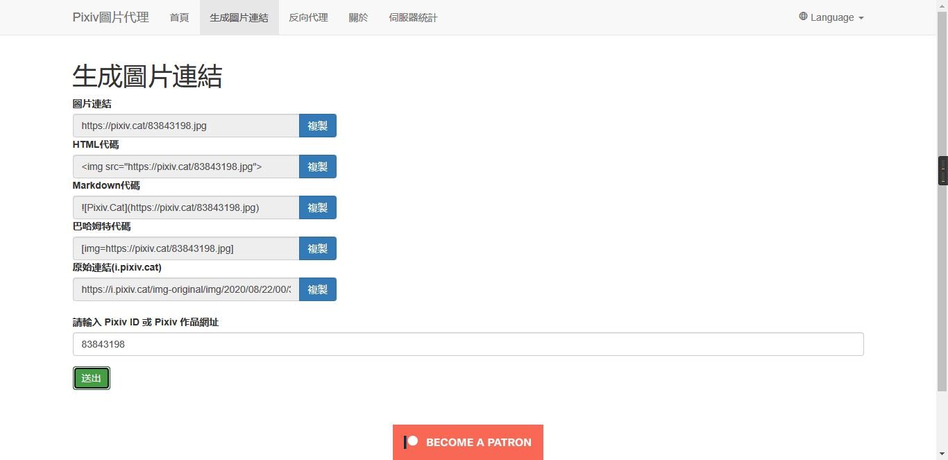 输入id点击送出即可获得链接,直接就是直链,而且会自动html和markdown调用很方便,多张图会自动罗列出来恭选择