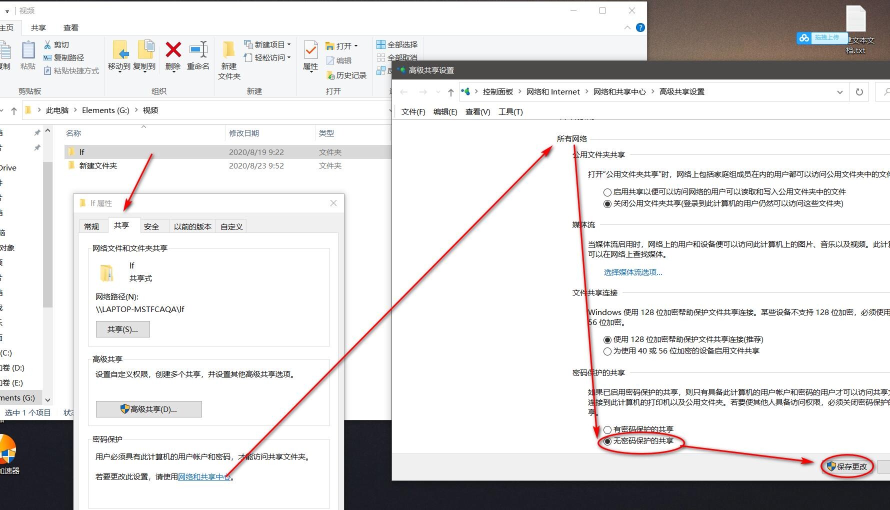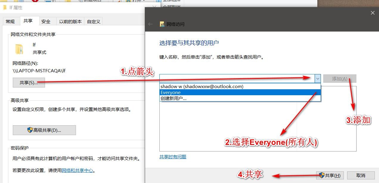 无加密的方式你需要将有密码保护的共享设置成无密码保护的共享,并且将共享的用户变为所有人。