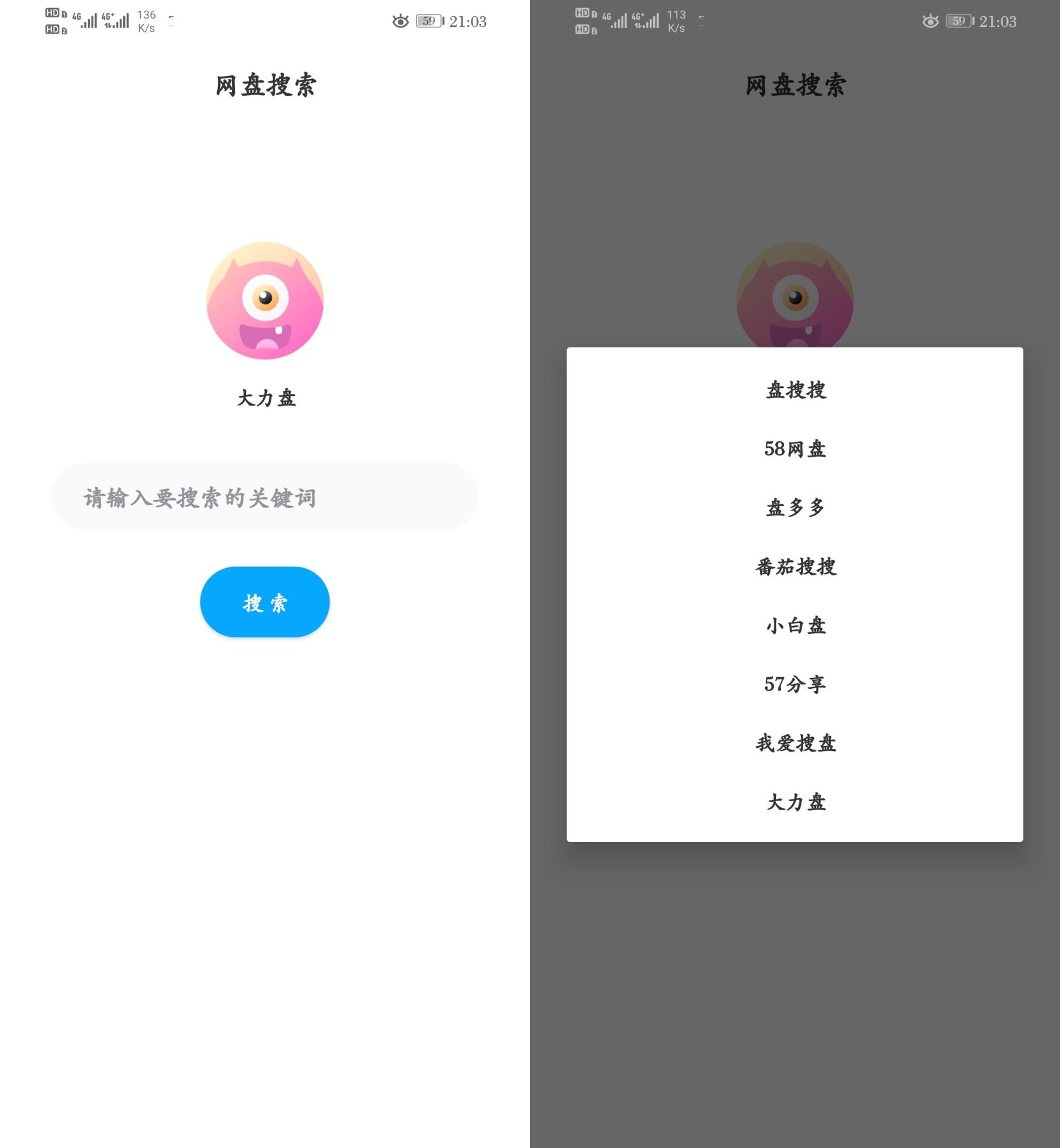 【安卓/度盘搜索】包含8个搜索网站 技术教程 5年前 Tpcllex - 1 一个安卓端的百度网盘搜索软件,干净无广告 最后审核由 龙姐 UID:1 软件界面(点头像可以进行搜索网站的切换): 搜索后可点击跳到原网站(浏览器打开)进行操作 虽说可以直接在网站里进行搜索,不过感觉搜索网站一多起来切换就比较麻烦,有一个这样的软件进行集合搜索可能会更加方便。