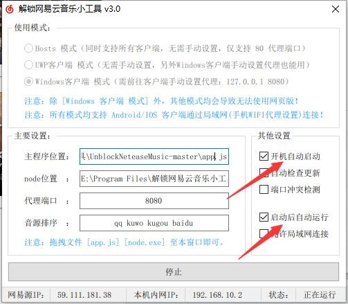修复了启动失败的问题(UnblockNeteaseMusic版本过期)